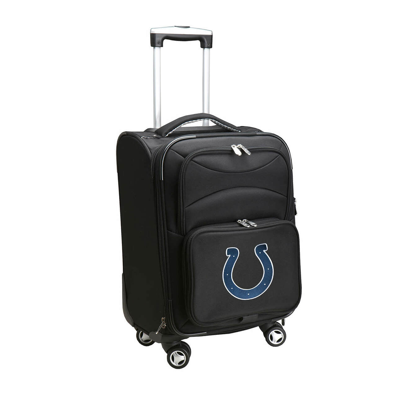 The Indianapolis Colts 20" Carry-on Spinner Luggage has multi-directional spinner wheels that offer incredible 360 degree upright maneuverability. It has a fully lined interior with crisscross garment straps and interior zipper pocket for delicate items and small accessories. Other features include two exterior zipper pockets, expandable packing space and top, bottom and side grab handles that make it easy to lift, no matter how it is stowed